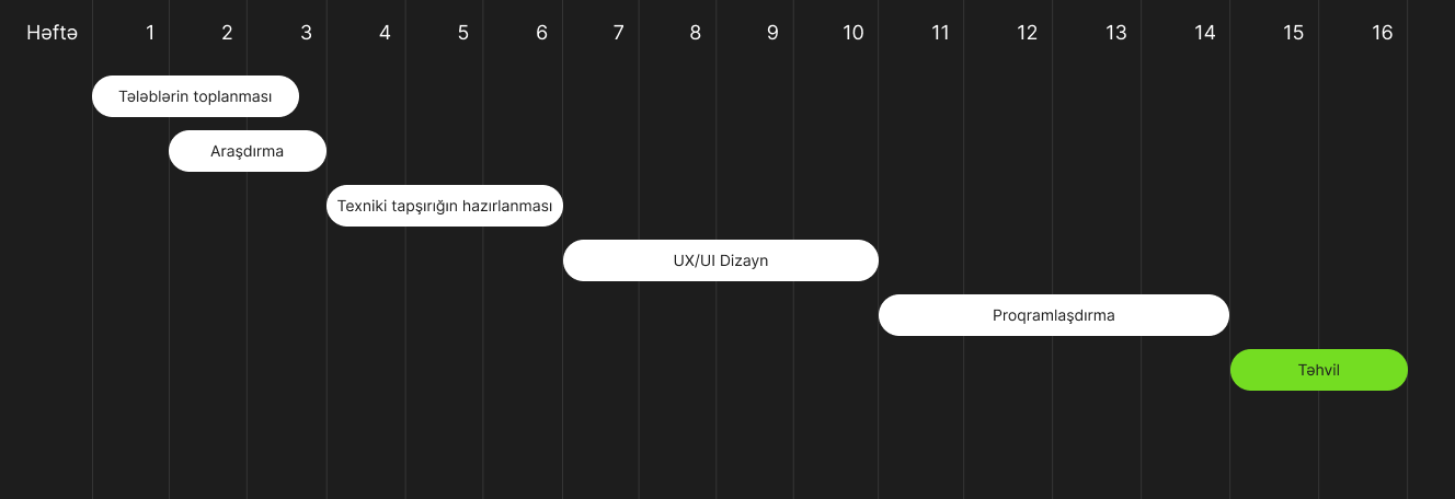 rəqib saytlar və ən yaxşı praktikalar öyrənilir. Bu məlumatlar əsasında funksional və rahat