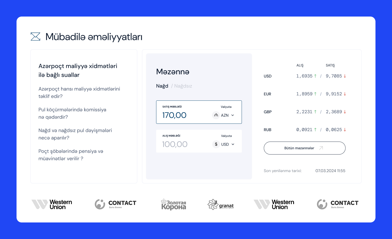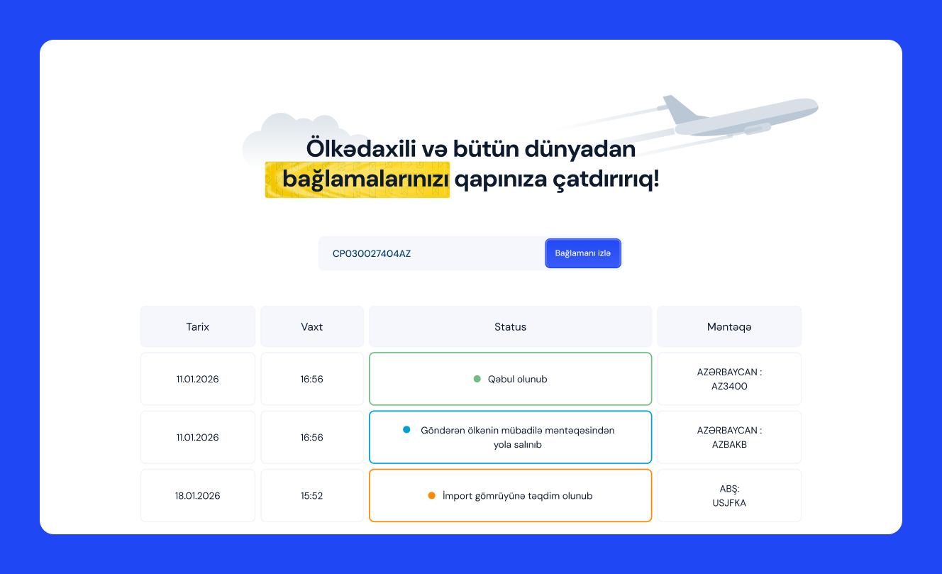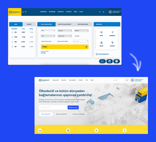 Yenilənmiş veb platformada istifadəçilərin əsas xidmətlərə yalnız 2–3 kliklə çatmasını təmin edib. Platforma 5 əsas kateqoriya üzrə strukturlandırılıb ki, istifadəçilər axtardıqları xidməti tez tapa bilsinlər. Göndəriş izləmə və ödəniş funksiyaları üzrə istifadəçi prosesi təxminən 50% daha sürətli edilib. Nəticədə, dizayn istifadəçi rahatlığını artırır və bütün xidmətlərə intuitiv çıxışı təmin edir.